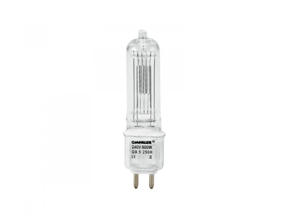 Světelný zdroj spaticí G-9.5, o výkonu 600 W, teplotou barev 3100 K, svítivostí 14000 lm a životností 250 hod.