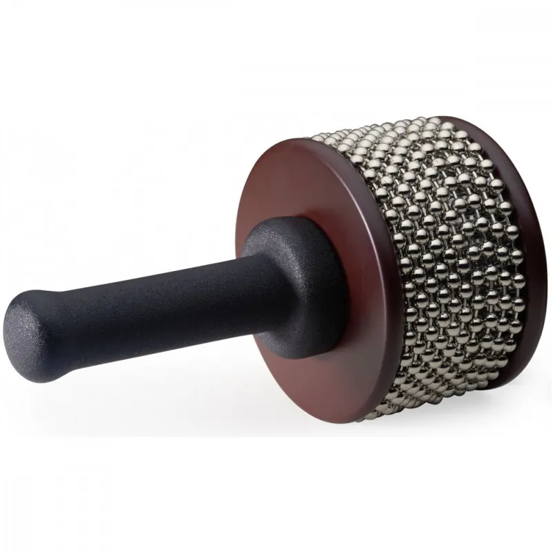 Profesionální malá cabasa, průměr 10,6 cm, délka 19 cm. Gumová ergonomická rukojeť, ocelové řetízky.