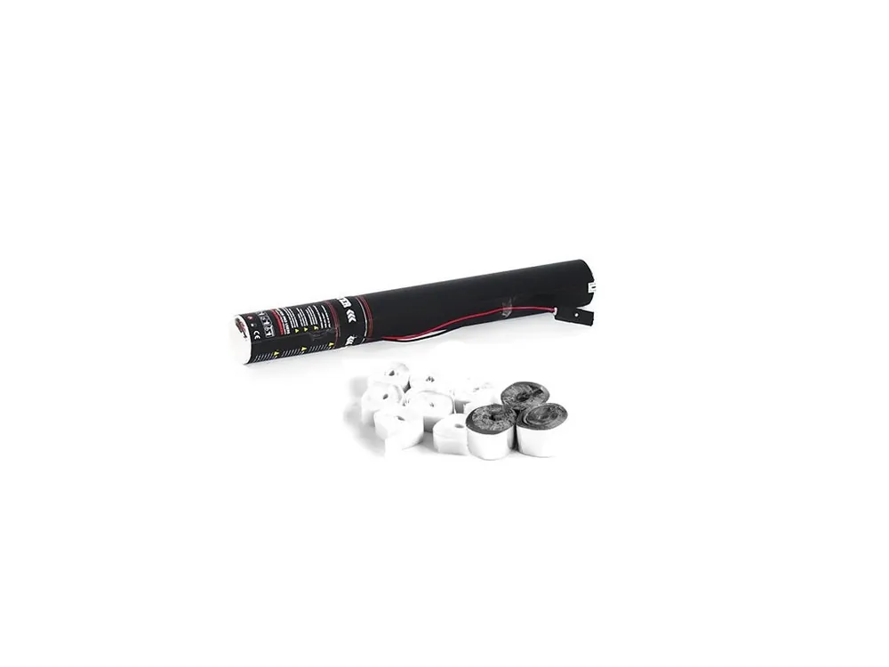 Streamer ammunition for E-Shot, WI-Shot and Confetti Gun. Top quality for professional use on stages, in discotheques etc.. Maximum load of paper streamers inside. Shoots the streamers up to 10 m. The effect is activated by an electric impulse. Complies with SP 371(1). BAM tested. Flame resistant – B1 certified. Fun for young and old. Available in different sizes, shapes and colors.