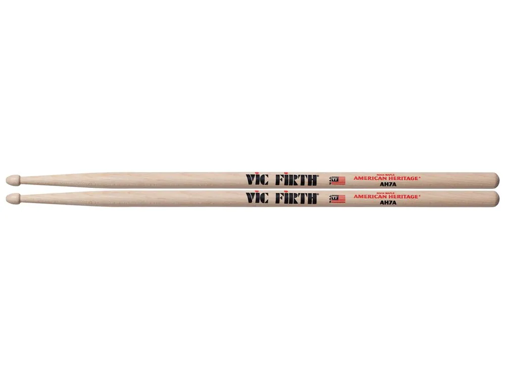VIC FIRTH 7A – American Heritage, javorové paličky s kulatější hlavičkou, díky které mají paličky bohatší zvuk u činelů, průměr: 13,5 mm, délka: 395 mm
