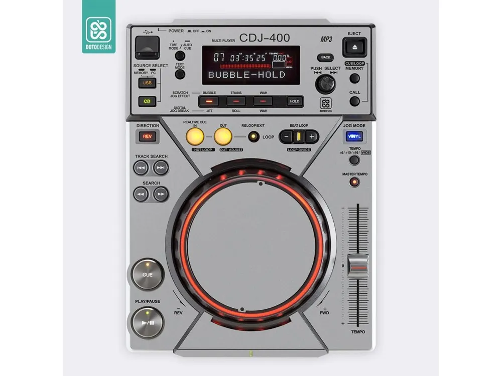 Nalepovací skin pro DJ přehrávač Pioneer CDJ-400 v provedení FULL COLORS, barva nardo grey (šedá).