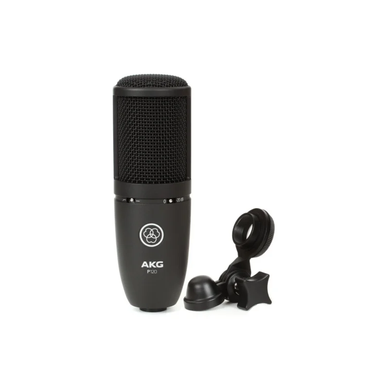 AKG P120 je kondenzátorový mikrofon s lehkou 2/3″ membránou. Uplatnění najde v produkčních a domácích studiích při snímání zpěvu, mluveného slova a při ozvučování nástrojů. Mikrofon je vybaven low-cut filtrem naladěným na frekvenci 300 Hz a přepínačem citlivosti s útlumem -20 dB. Kardioidní směrová charakteristika zvyšuje odolnost proti zpětné vazbě, dovoluje přesné zaměření zdroje signálu a eliminaci nechtěných přeslechů. Tělo z precizně opracované zinko-hliníkové slitiny společně s pevnou ochrannou mřížkou z oceli zajišťuje vysokou odolnost při každodenním použití.