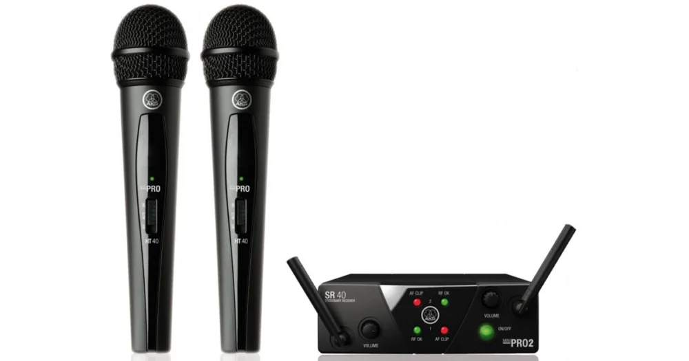 kompletní bezdrátový systém, dual, řada WMS 40 MINI2, 2x hand mikrofon HT 40 MINI, přijímač SR 40 MINI2, výstup 2x Jack 6.3, provoz až 30 hodin na jednu AA baterii