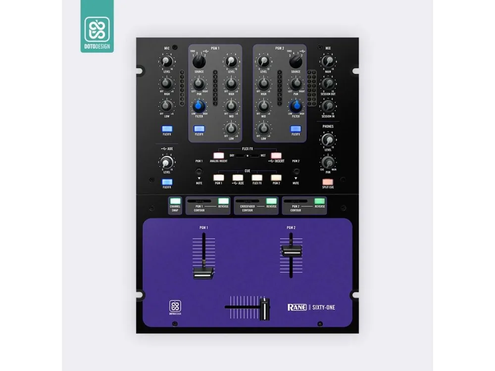 Nalepovací skin pro mixážní pult Rane Sixty-One 61 v provedení COLORS DVS, barva purple (fialová).