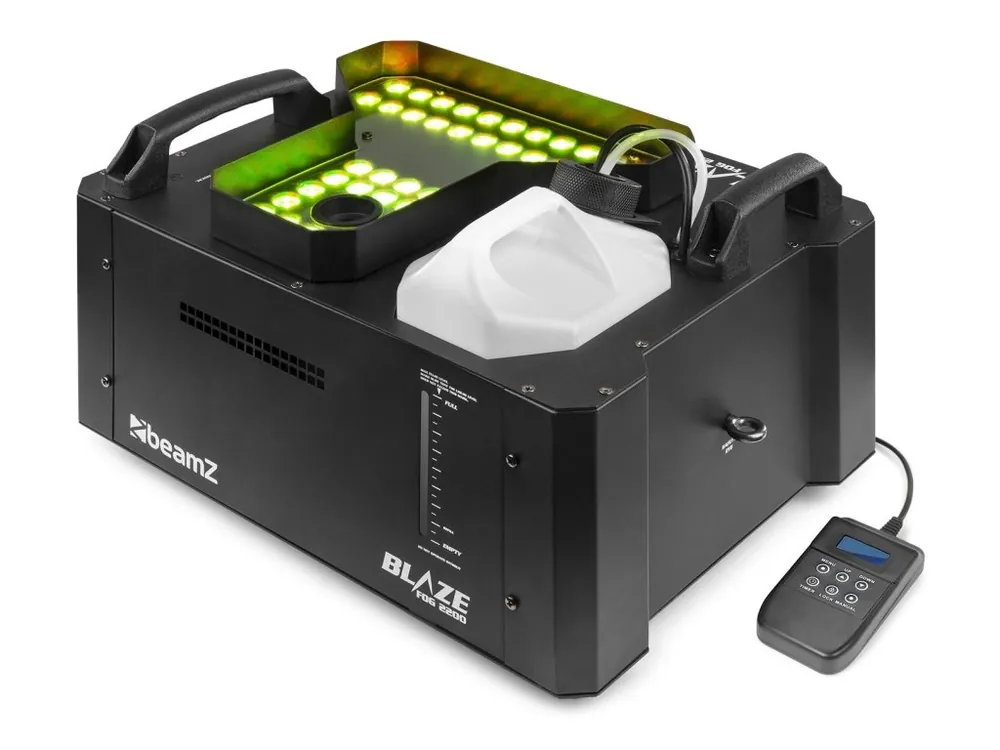 Série Blaze je řada profesionálních výrobníků mlhy, které vydávají spoustu mlhy, kdykoli ji potřebujete! Tyto odolné výrobníky jsou vybaveny vysoce výkonnými RGBA LED diodami a vedle standardní vodorovné polohy můžete tento stroj použít také svisle, a to díky nově navrženému systému potrubí kapaliny. Stroje Blaze lze ovládat pomocí vestavěného ovládacího panelu s LCD displejem nebo pomocí dodávaných dálkových ovladačů. Všechny mají vysoce kvalitní topné těleso a velkou vestavěnou nádrž na kouřovou kapalinu.
