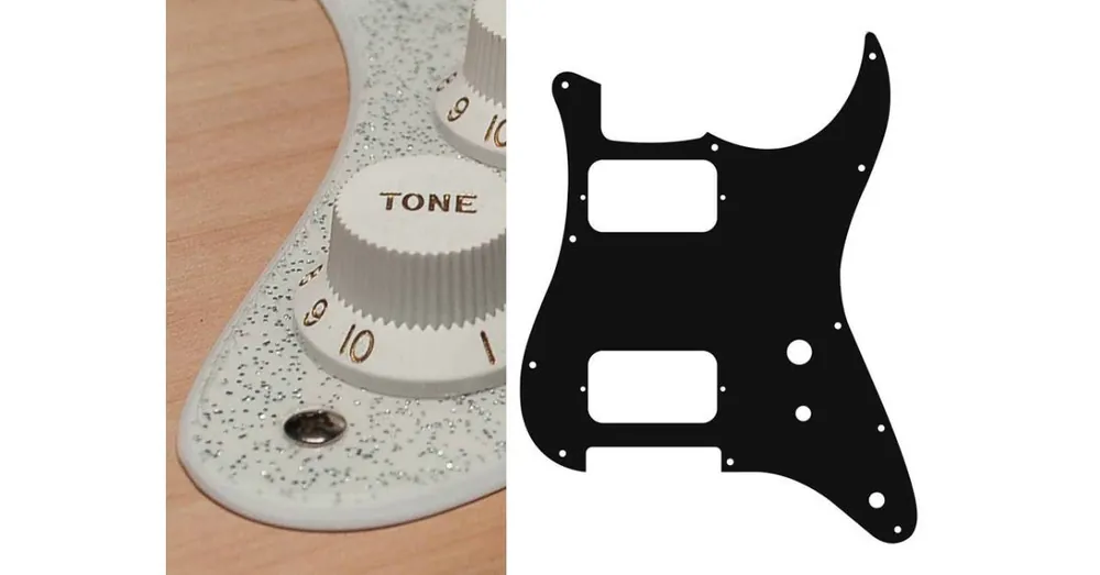 Pickguard, Stallion, HH, 2 otvory na potenciometry, spínač, 2 vrstvy, třpytivá stříbrná barva