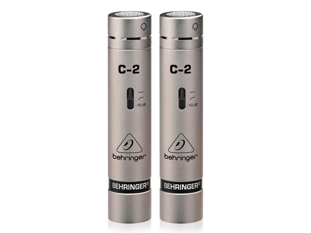 BEHRINGER C-2 – jsou dva spárované profesionální kondenzátorové mikrofony pro stereofonní nahrávání či živé aplikace. Kardioidní snímání účinně eliminuje zpětnou vazbu, lehká membrána má ultraširokou frekvenční odezvu a vynikající reprodukci zvuku, nechybí přepínatelný nízkofrekvenční filtr a přepínač útlumu, vstup FET s velmi nízkým šumem bez transformátoru eliminuje nízkofrekvenční zkreslení. Tělo je kovové, konektor je klasický XLR s pozlacenými konektory pro lepší připojení. Součástí balení jsou držáky na mikrofonní stojan, kryty, dvojité rameno rukojeti a kufřík.