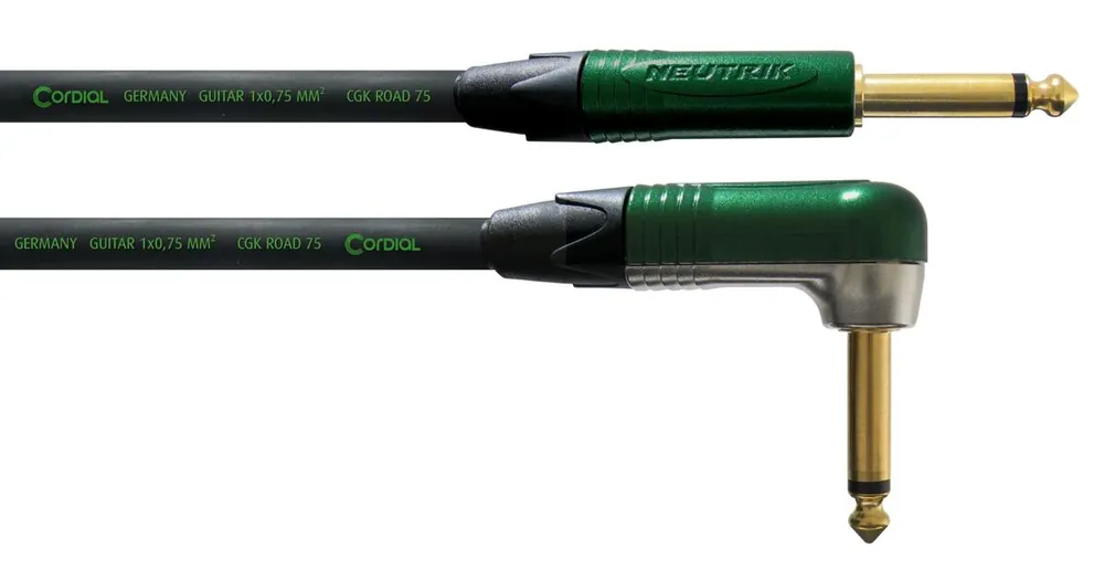 nástrojový kabel, Jack 6.3 mono – Jack 6.3 mono lomený, délka 9 metrů, kabel CGK ROAD 75, vysoce odolný kabel, originální konektory Neutrik, pásek na suchý zip