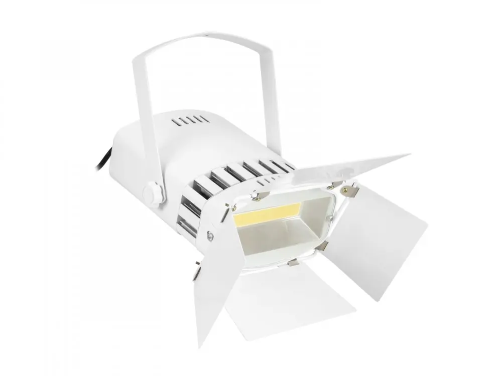 LED spotlight s neutrální bílou barvou 4200K, ochranným krytím IP20 a širokým vyzařovacím úhlem paprsku 50°. Výkonná 50W LED COB (chip-on-board) se postará o skvělé osvětlení obchodů nebo prodejních stánků. Praktický otočný držák pro snadnou pozemní i závěsnou instalaci. Dodáváno s klapkami. Napájení pomocí přiloženého kabelu s bezpečnostní zástrčkou. Pasivní chlazení.