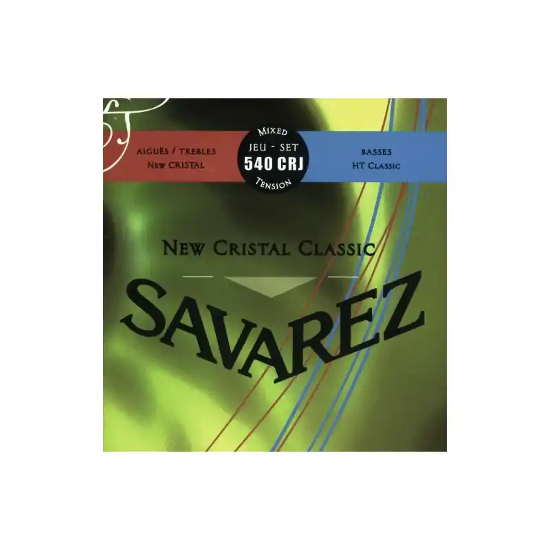 Kombinace NEW CRISTAL Diskant strun s tradičními HT Classic Bass; 540CRJ mixed tension, červená/modrá; Diskant: New Cristal Nylon Normal, Bass: HT Classic Silver Wound, High;