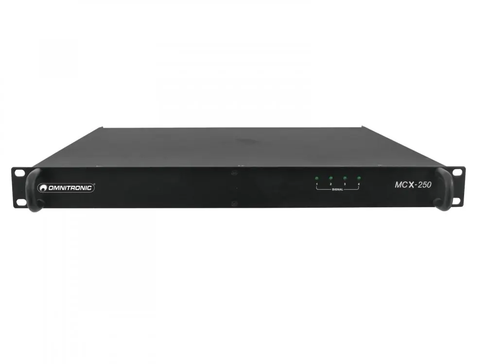 Velice šikovný pomocník – ideální pro zákazníky,kteří mají stávající aparaturu a chtějí jí „předělat“ na 100V systém. Omnitronic MCX-4250 není samozřejmě vhodný jen pro předělávání stávajících zvukových systémů, ale také pro vytváření nových. Maximální zatížení 4x 250W, frekvenční rozsah 50-16 000Hz, rozměry 482 x 490 x 48 mm.