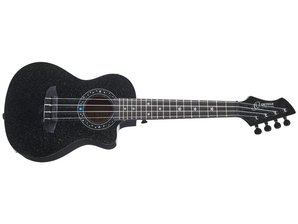 Řada Horizon značky Ortega nabízí kvalitně zpracované akustické a elektroakustické ukulele v koncertní velikosti charakteristické hlavicí ve tvaru elektrických kytar a použitím exotických dřev. Tělo tohoto ukulele je vyrobeno z překližovaného agathis, které zdobí lesklý třpytivý finiš Black Silver Sparkle. Ke krku z okoumé je přilepen hmatník z kompozitního dřeva (tecwood) osazený osmnácti pražci. Struny jsou uchyceny v kobylce z kompozitu a uzavřených černých ladících mechanikách (Die-Cast – 4 in line) s černými kolíčky. Pěkné zpracování podtrhují zdobné polohové značky a rozeta složená z hvězd. O ozvučení nástroje se stará preamp MagusUke s integrovanou ladičkou. Kouzlo ukulele spočívá v tom, že se na něj snadno a velmi rychle naučí hrát téměř každý. Pokud se do početné rodiny ukulelistů chcete připojit i vy, neváhejte a přijďte si tento nástroj vyzkoušet.