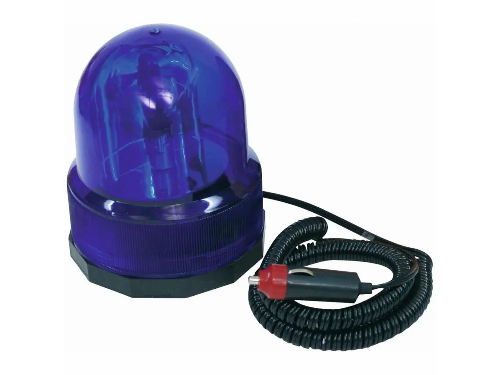 Policejní maják, typ Colombo. Magnetická základna, napájení 12V k připojení do autozásuvky pro zapalovač. Barva modrá. Není určeno k použití na veřejných komunikacích!