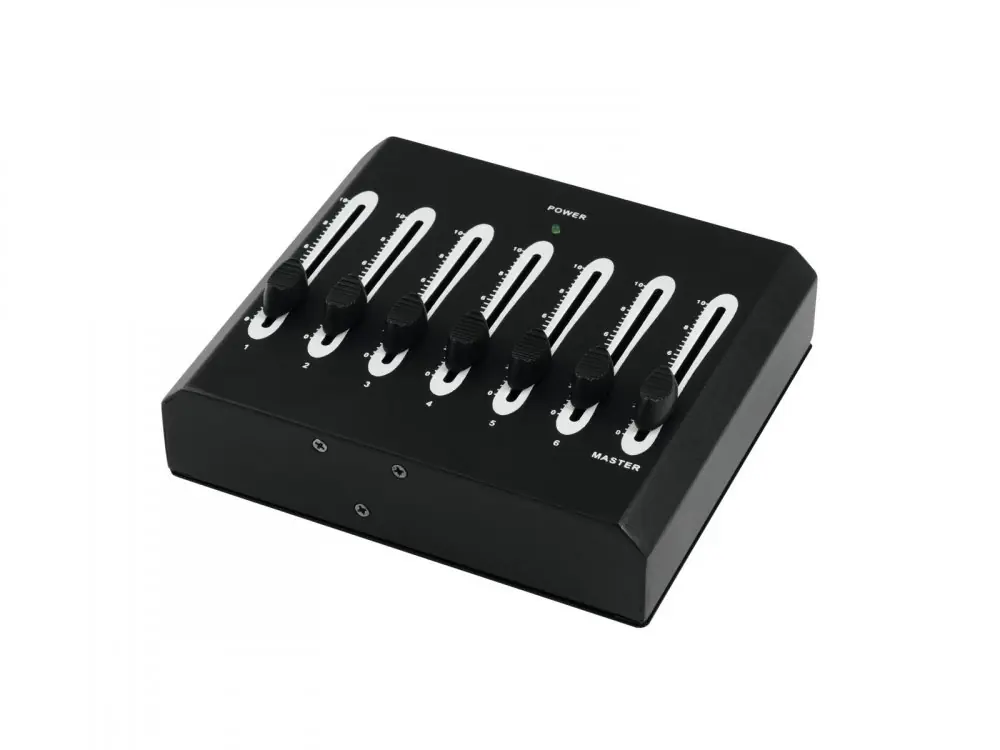 Basic DMX controller for 6 channels with master faderBasic DMX controller for convenient operation of light effect units with DMX512 interface (e.g. spotlights and dimmers)