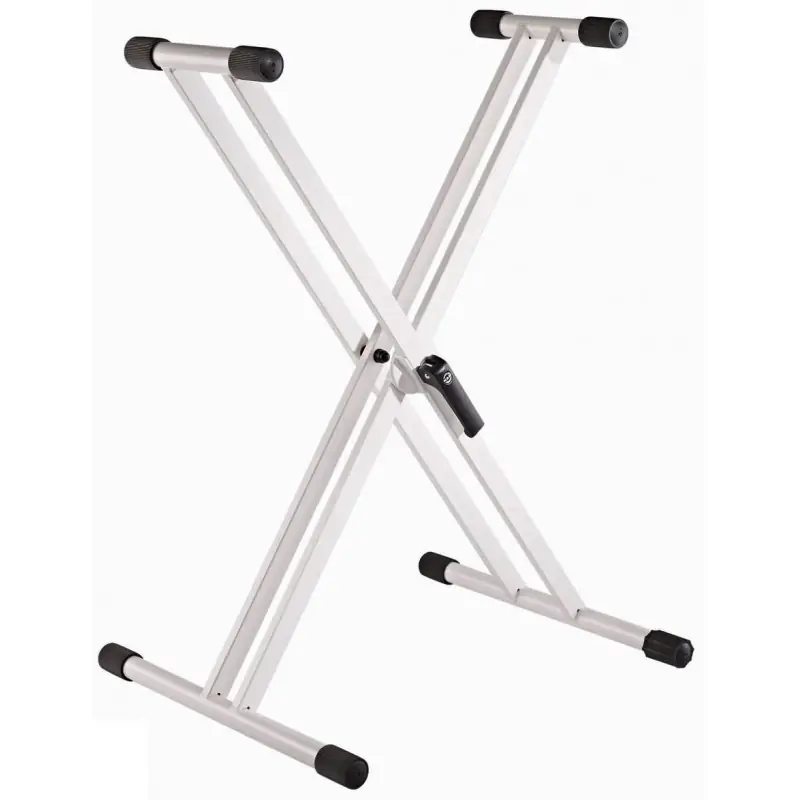 Dvojitý stojan s. »Smart-Lock« rychlým upínákem. Díky krátkým ramenům je vhodný pro digitální piana. Nastavitelná koncovka pro vyrovnání na nerovném povrchu. Klávesový stojan svojité X s menší hloubkou.