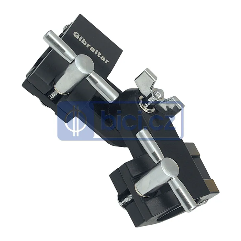 Držák na rampu z řady Gibraltar Road Series. Zabezpečuje dvě trubky rampy určené pro bubny nebo činely a umožňuje jejich nastavení do potřebného úhlu.