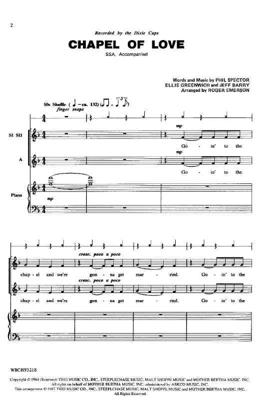 Rytmická skladba z 60. let napsána autory: Jeff Barry, Ellie Greenwich a Phil Spectorod pro dívčí skupinu The Dixie Cups. Později tuto píseň mimo jiné zpívala také známá americká skupina The Beach Boys. Skladba je v úpravě pro SSA vokální soubor. Klavírní doprovod včetně akordových značek.
