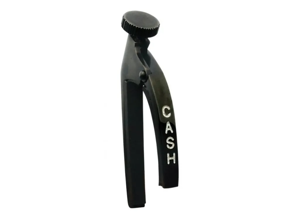 Kapodastr Johnny Cash Capo je vhodný pro kytary s plochým profilem krku. Mechanismus v podobě šnekového kola zajišťuje stabilitu ladění a snadnou manipulaci s kapodastrem, použitý materiál, tj. bronz, je zárukou trvanlivosti a dobrého sustainu strun. Části přicházející do styku s kytarou jsou opatřeny pogumovanou vrstvou tak, aby nemohlo dojít k poškození nástroje.