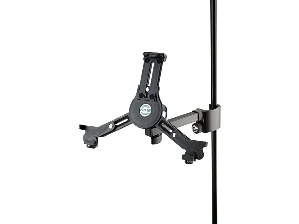 Profesionální univerzální držák pro tablet s nastavitelným ramenem. Držák je vybaven ramenem s mechanismem, který ho bezpečně a pevně upne například o mikrofonní nebo jiný stojan a poskytuje tak vámi zvolenou ideální výšku pro jeho použití. Tříramenný systém s nastavitelnou velikostí se okamžitě přizpůsobí jakémukoliv tabletu. Nastavovat lze hloubku, šířku i výšku. Hloubka je nastavitelná od 5 do 11 mm, výška od 220 do 331 mm a šířka od 128 do 232 mm. Držák je možné naklápět a to až do 90 stupňového uhlu. Hmotnost: 0,265 kg. Držák je možné použít mimo jiné is modely iPad, iPad Air, iPad Pro, Amazon Fire HDX 8,9, Samsung Galaxy Tab od velikosti 9,7, Google Nexus 9, Asus Transformer, Microsoft Surface a Surface Pro a jiné. Barevné provedení: Black.