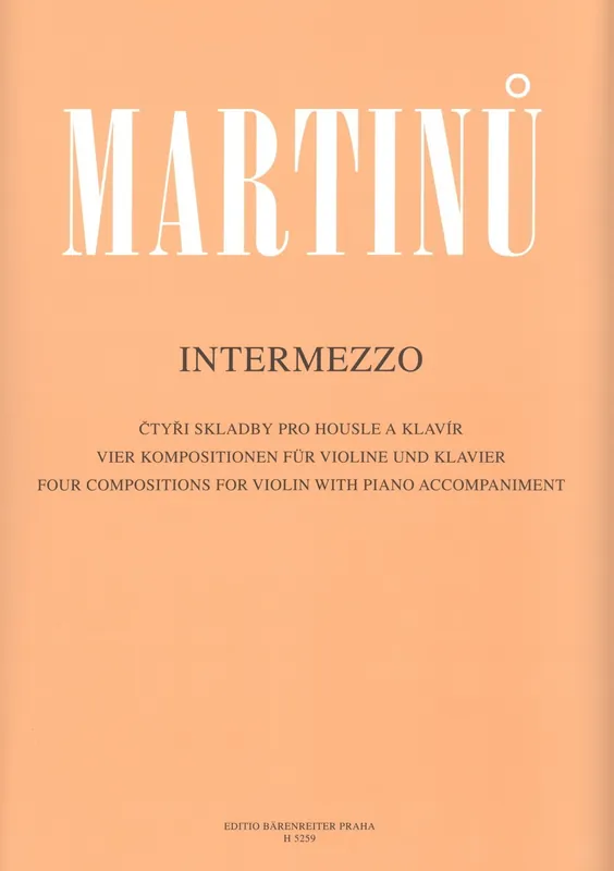 Titul INTERMEZZO Vám nabízí čtyři skladby pro housle a klavír. Sešit obsahuje klavírní doprovod plus samostatné vložený sólový part pro housle.