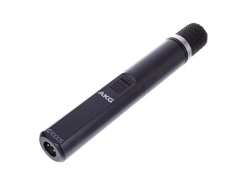 AKG C 1000 je kondenzátorový mikrofon a kardioidní charakteristikou, kterou je možno „zúžit“ přiloženým konvertorem na superkardioidu. Napájení 2x baterie AA, nebo phantom.