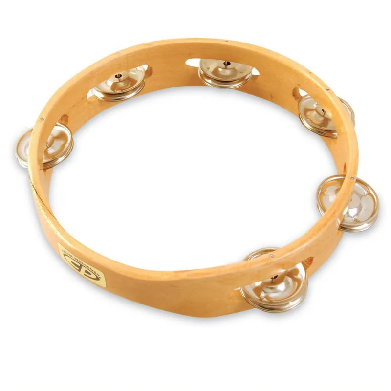 Dřevěná tamburína CP, jedna řada rolniček. Velikost 8″. Zaoblené hrany, ergonomicky tvarovaná část pro držení tamburíny – vhodné i pro menší ruce.