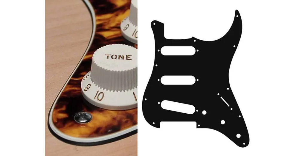Pickguard, Stallion, standardní, SSS, 3 otvory na potenciometry, 3-5 polohový spínač, 3 vrstvy, mramorová žlutá barva