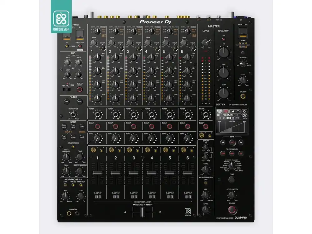 Nalepovací skin pro mixážní pult Pioneer DJM-V10 v provedení FULL COLORS, barva black (černá).