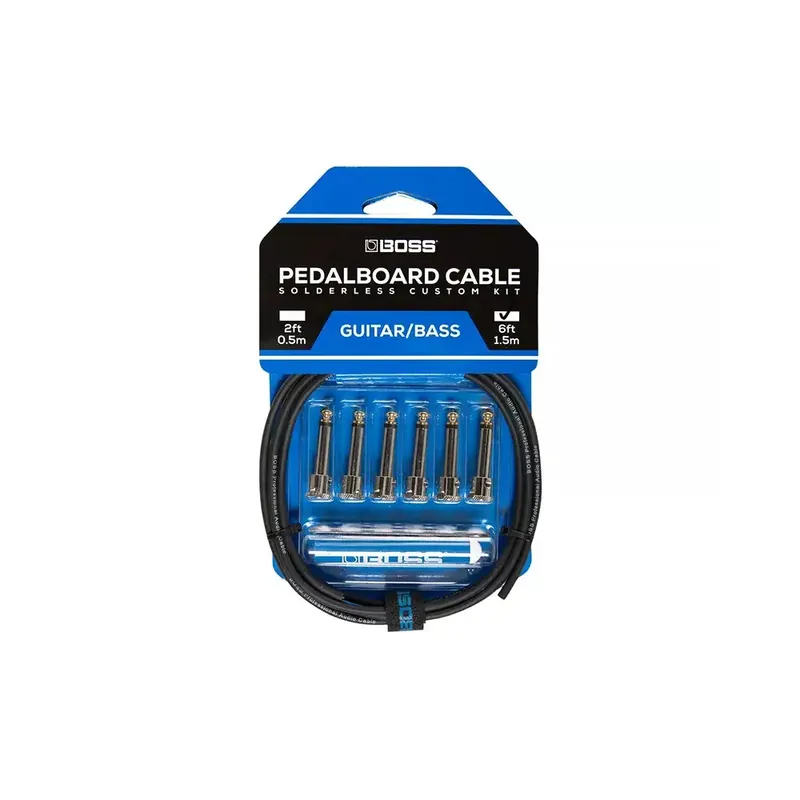 Kabely ze série Boss BCK nabízí ideální řešení pro „prodrátování“ pedalboardu. V balení najdete kabel a konektory, z kterých si kabel požadované délky sami vyrobíte – bez nutnosti pájení. K úspěšné montáži vám stačí pouze šroubovák. Na výběr je několik sad s dvěma, čtyřmi, šesti, dvanácti nebo čtyřiadvaceti konektory. Samozřejmostí je kvalitní kabel s vodičem z bezkyslíkaté mědi a pozlacené konektory, které zajistí optimální zvukovou kvalitu.
