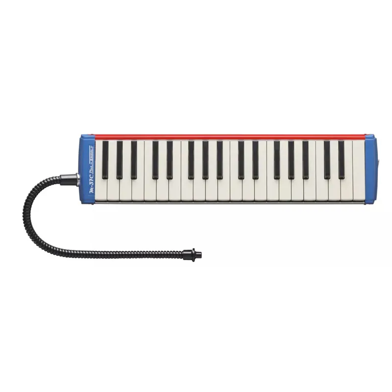 Suzuki M-37C Plus je kvalitní altový melodion, neboli klávesová harmonika. Nabízí překrásný červeno-modrý povrch v kombinaci se silnými fosforbronzovými plátky a je ideální volbou pro živé vystupování nebo do studia. Tělo je z hliníku s povrchovou úpravou vinylovým efektem, klapkou pro uvolnění vlhkosti a pohodlnou rukojetí. Nyní je nově dodáván s novým prodloužením náustku typu husí krk, který je kovový a drží tvar, což je výhodné při hře například se zpěvem a zavěšeným melodionem na řemenu. Součástí je i MP-2200 Soft barevná vinylová taška a náustek MP-161 ‚Gooseneck‘. Suzuki Melodiony jsou známé svojím precizním laděním a vysokou odolností. Nabízí 37 kláves a rozsah od f po f3.
