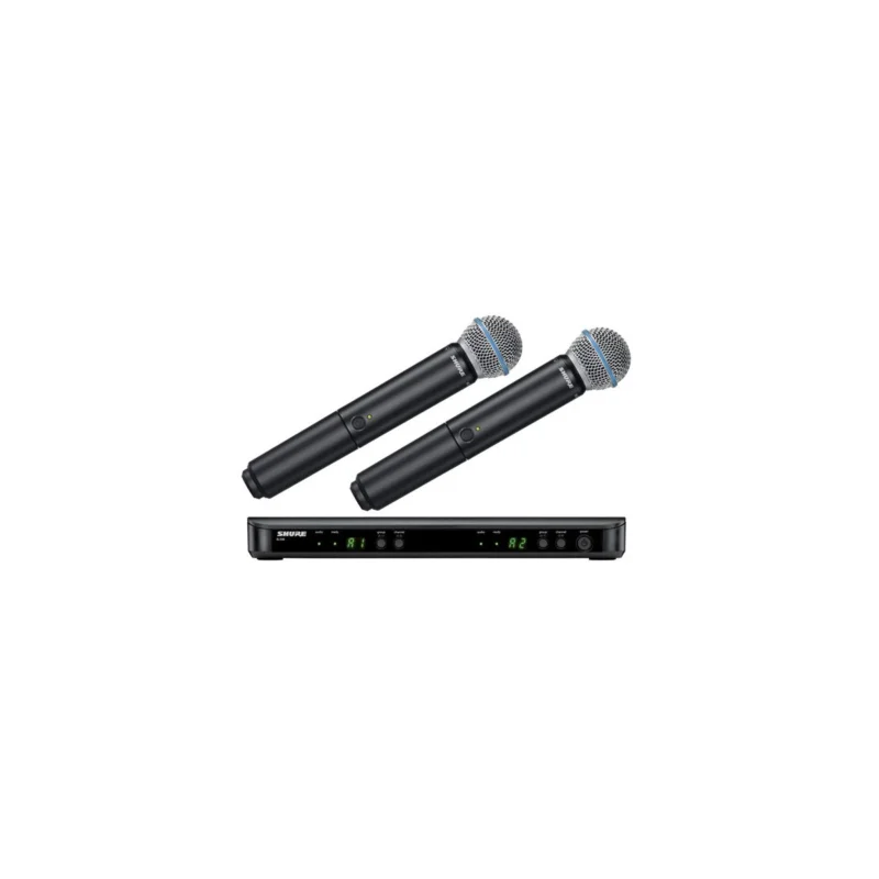 SHURE BLX288E/B58 je duální bezdrátový set určený pro ozvučování živého zpěvu. Skládá se ze dvou ručních vysílačů BLX2 osazených mikrofonními kapslemi BETA 58 a analogového přijímače BLX88. Sestava pracuje v UHF pásmu na frekvencích 518 – 542 MHz. Superkardioidní směrová charakteristika mikrofonů BETA 58 umožňuje přesné zaměření zdroje zvuku, eliminuje nežádoucí přeslechy a minimalizuje zabarvení signálu při snímání mimo osu. Je ideální volbou pro blízké snímání v prostřední s vyšším okolním hlukem a najde uplatnění jak při studiovém nahrávání, tak při pódiovém použití.