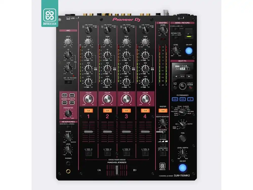 Nalepovací skin pro mixážní pult Pioneer DJM-750 MK2 v provedení COLORS, barva pink (růžová).