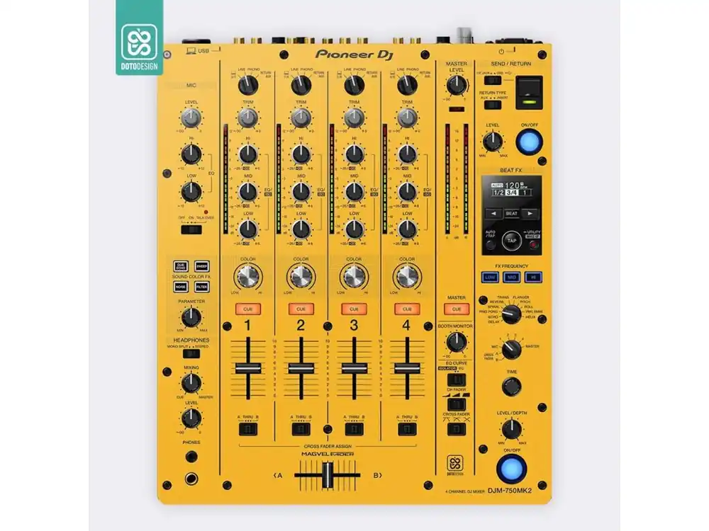 Nalepovací skin pro mixážní pult Pioneer DJM-750 MK2 v provedení FULL COLORS, barva dark yellow (tmavě žlutá).