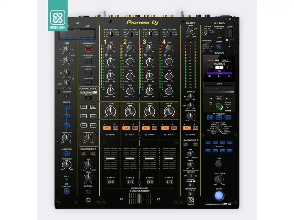 Nalepovací skin pro mixážní pult Pioneer DJM-A9 v provedení COLORS DVS, barva yellow (žlutá).