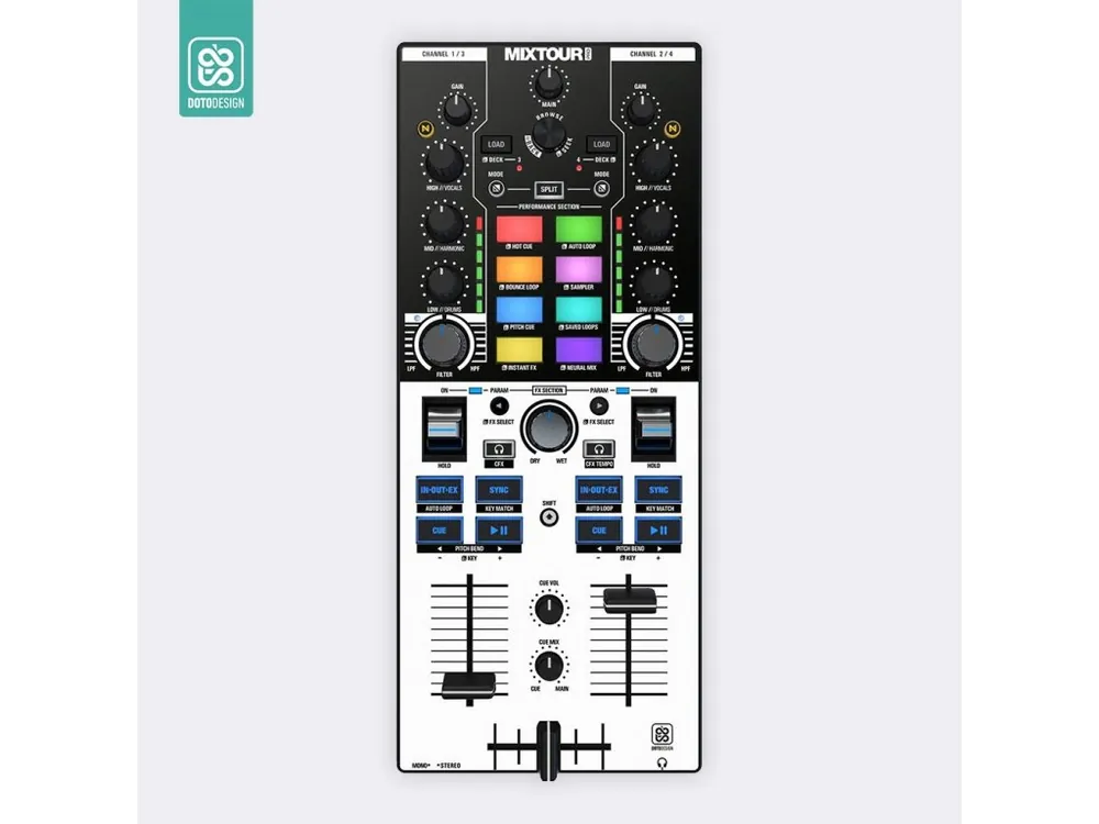 Nalepovací skin pro MIDI kontroler Reloop Mixtour Pro v provedení COLORS DVS, barva white (bílá).