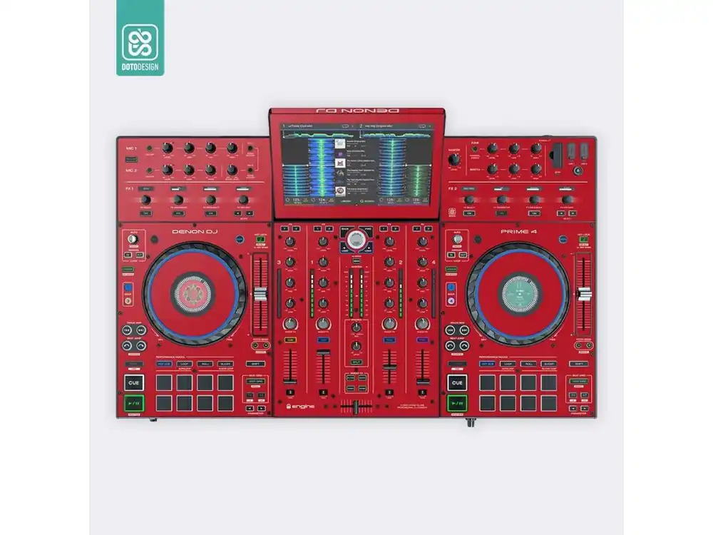 Nalepovací skin pro MIDI kontroler Denon Prime 4 v provedení FULL COLORS, barva aurora red (červená).