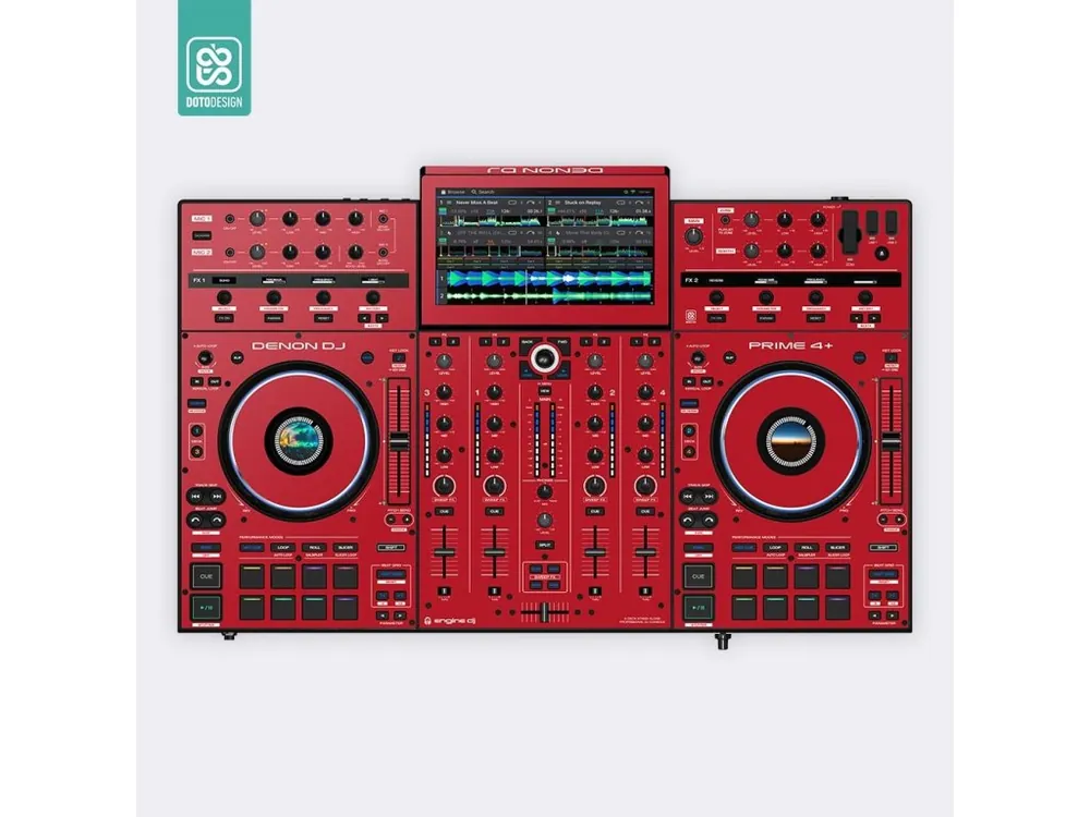 Nalepovací skin pro MIDI kontroler Denon Prime 4+ v provedení FULL COLORS, barva aurora red (červená).