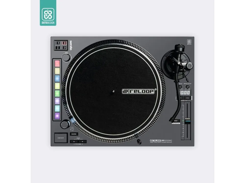 Nalepovací skin pro DJ gramofon Reloop RP-8000 MK2 v provedení FULL COLORS, barva graphite grey (grafitová šedá).