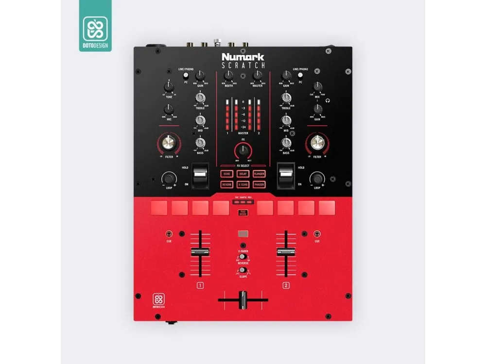 Nalepovací skin pro mixážní pult Numark Scratch v provedení COLORS DVS, barva red (červená).
