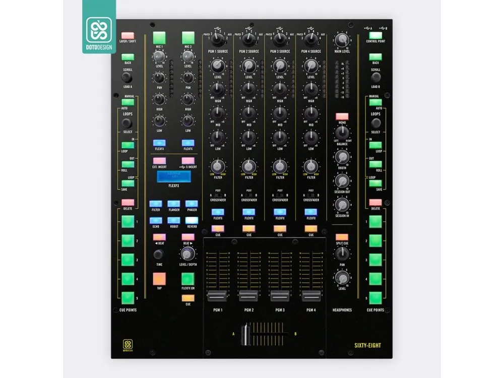 Nalepovací skin pro mixážní pult Rane Sixty-Eight 68 v provedení COLORS DVS, barva yellow (žlutá).