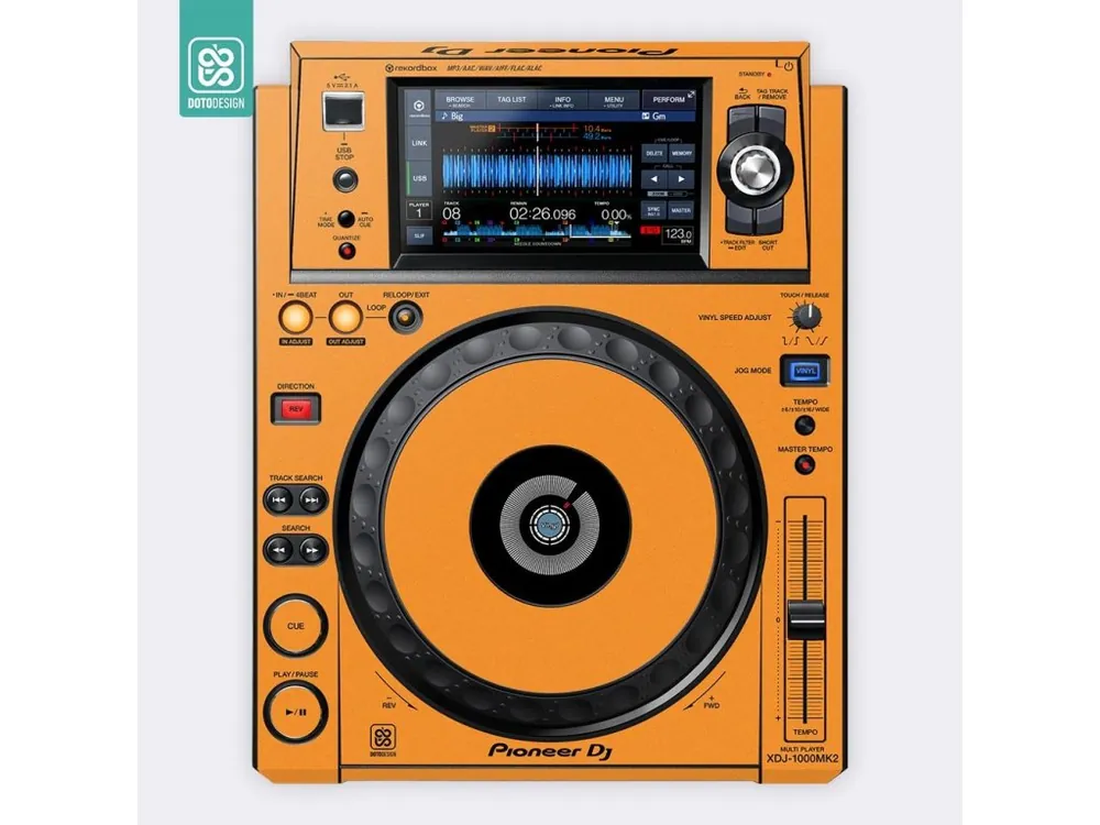 Nalepovací skin pro DJ přehrávač Pioneer XDJ-1000 MK2 v provedení FULL COLORS, barva sunset orange (oranžová).