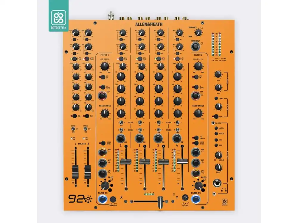 Nalepovací skin pro mixážní pult Allen & Heath XONE:92 Limited Edition v provedení FULL COLORS, barva sunset orange (oranžová).