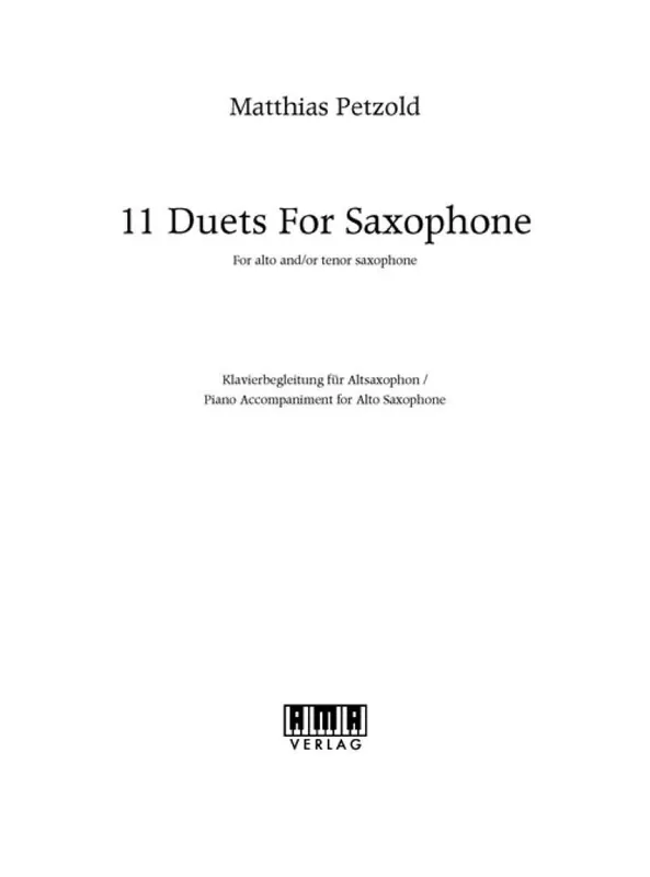Sešit s klavírními doprovody pro dva altové saxofony nebo altový a tenorový saxofon pro titul 11 DUETS for SAXOPHONE (kód: AMA610379).