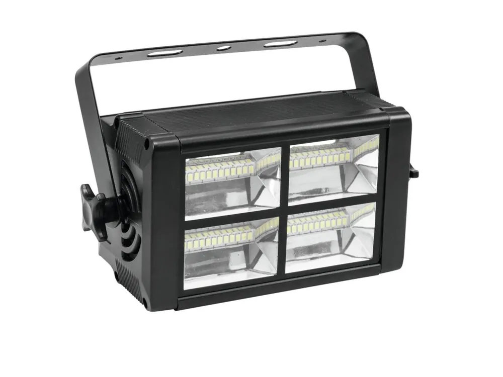 Eurolite LED Mini strobe je rozděleno do čtyř samostatných sekcí. Každá sekce je osazena 12x 5030 SMD LED výkonnými čipy. DMX-ovládaní provozu (3 DMX kanály) nebo samostatný provoz s Master / Slave. Jas a rychlost záblesků je plynule regulovatelná. Možnost ovládání zvukem přes vestavěný mikrofon. S 3-pin XLR-připojení DMX. Ideální na domácí párty, do malého clubu a pod.