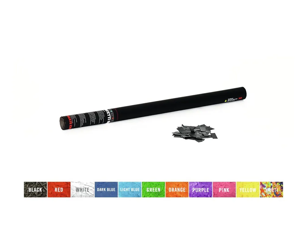 Top quality for professional use on stages, in discotheques etc.. Maximum load of paper confetti inside. Shoots the confetti up to 12 m. Mechanism activated by turning the bottom. Complies with SP 371(1). BAM tested. Flame resistant – B1 certified. Fun for young and old. Available in different sizes, shapes and colors.