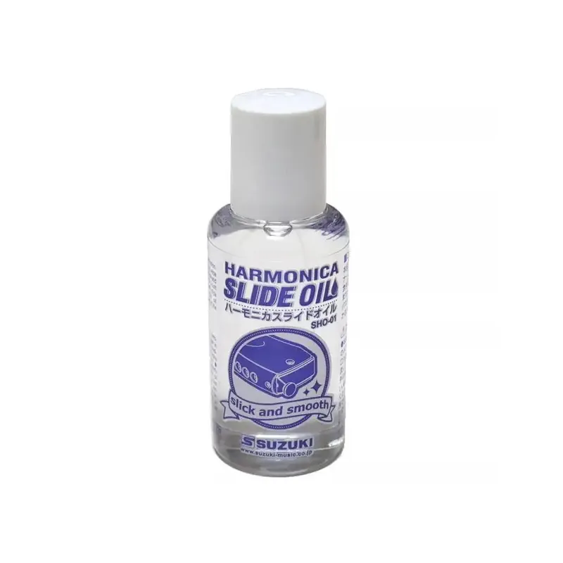 Suzuki SHO-01 Slide Oil je olej pro foukací harmoniky. Jedná se o speciální olej, který udržuje pohyb slideru chromaticých harmok v dobrém stavu. Hladký pohyb slideru lze dosáhnout nanesením oleje v tenké vrstvě na obě strany a otvory pružiny. Je vyroben ze surovin neškodných pro lidský organismus. Obsah nádobky je 40 mililitrů. Vyrobeno v Japonsku.
