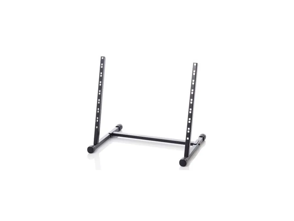 Stolní 8U rack 19″, vyroben z oceli (20x20mm). Na spodní straně naleznete gumové nožky. Součástí je také 8 úchytných kamenů a šroubů.