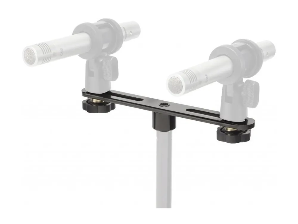 Po upevnění na stojan může adaptér držet dva oddělené mikrofony pomocí mikrofonních svorek nebo ramen s 3/8″ šrouby s aretací. Tyto dva šrouby mohou být nastaveny tak, aby poskytovaly nejen rotaci 360 ° pro každý mikrofon, ale také 2 „- 7“ oddělení mezi dvěma mikrofony. To vám umožní najít ideální umístění pro každý mikrofon a současně perfektní řešení pro konkrétní situaci při snímání signálu.