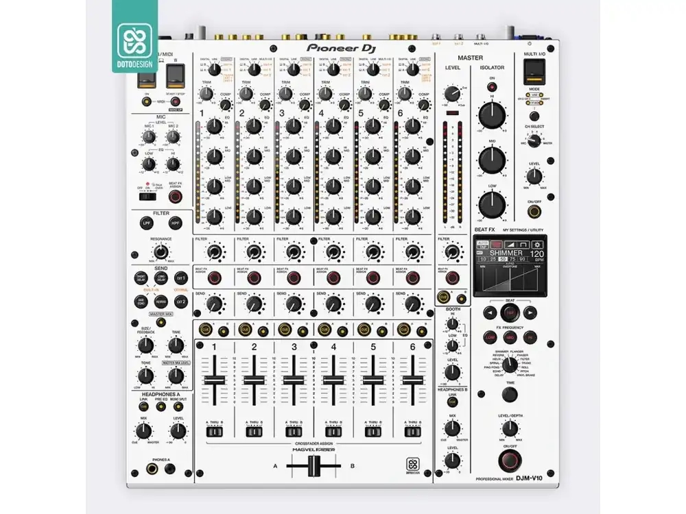 Nalepovací skin pro mixážní pult Pioneer DJM-V10 v provedení FULL COLORS, barva white (bílá).