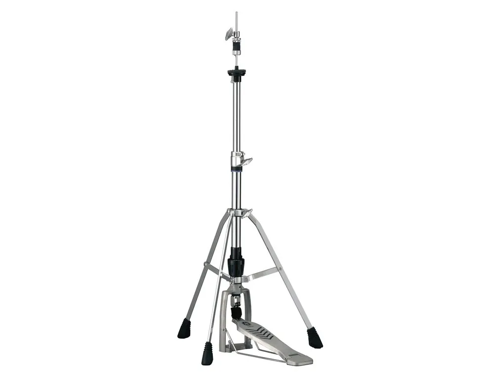 YAMAHA HS740A – jednoduchý, subtilní, ale konstručně velmi zdařilý a skvěle fungující hi-hat stojan. Samozřejmostí jsou otočné nohy a nastavení síly pružiny zvedající horní činel.